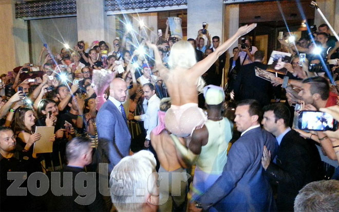 Το ενδιαφέρον για την εκκεντρική ερμηνεύτρια είναι μεγάλο και χαρακτηριστικό είναι ότι από νωρίς το μεσημέρι φωτορεπόρτερ και φανατικοί θαυμαστές «κατασκήνωσαν» έξω από το ξενοδοχείο Grande Bretagne στο Σύνταγμα.