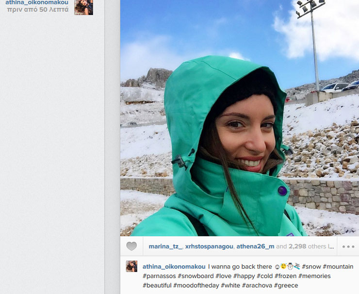 Με νοσταλγική διάθεση ξύπνησε σήμερα η Αθηνά Οικονομάκου, η οποία μετά τη ρομαντική απόδραση με τον σύντροφό της στην Αράχωβα και την επιστροφή της στην Αθήνα, μοιράστηκε με τους followers της στο instagram μία φωτογραφία από τις ολιγοήμερες διακοπές που είχε.