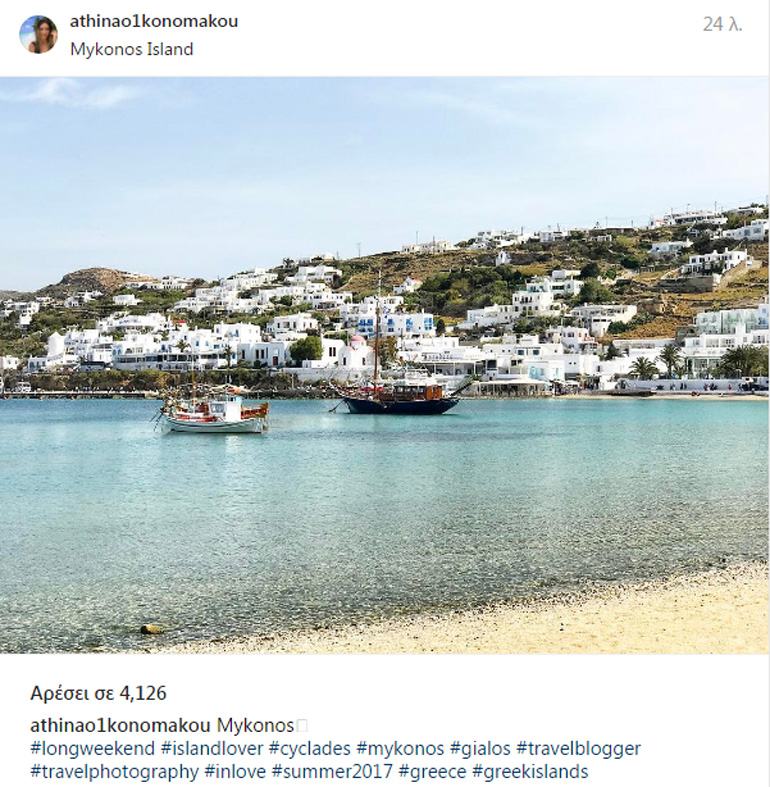 Μπορεί η Αθηνά Οικονομάκου να επέστρεψε πρόσφατα από το ταξίδι της στις Μαλδίβες με τον αγαπημένο της Φίλιππο Μιχόπουλο, αλλά αυτό φαίνεται να μην την εμπόδισε καθόλου στο να ετοιμάσει τις βαλίτσες της και να ταξιδέψει για τη Μύκονο όπου και θα περάσει το τριήμερο της Πρωτομαγιάς.