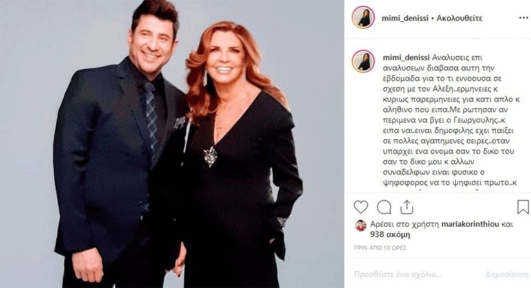 Την απάντησή της σχετικά με μια πρόσφατη δήλωση που έκανε για τον Αλέξη Γεωργούλη και την εκλογή του στην Ευρωβουλή θέλησε να δώσει η Μίμη Ντενίση μέσα από τον προσωπικό της λογαριασμό στο Instagram.