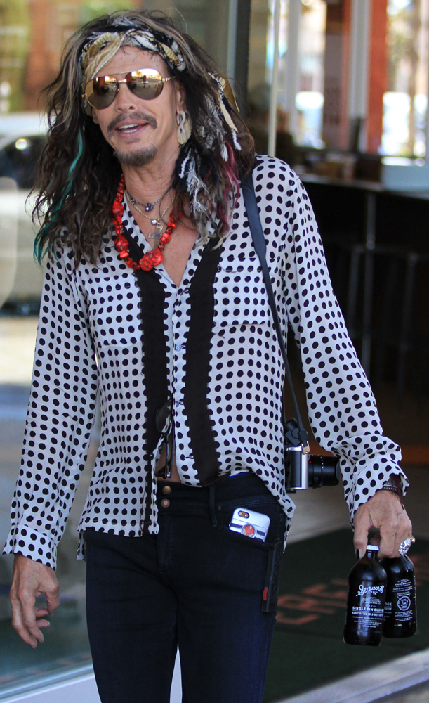Είναι εκκεντρικός και σίγουρα πολύ διαφορετικός από τους άλλους καλλιτέχνες. Ο frontman του συγκροτήματος Aerosmith, Steven Tyler εμφανίστηκε ντυμένος με έναν πολύ ιδιαίτερο τρόπο έτσι ακριβώς όπως μας έχει συνηθίσει. Ο φωτογραφικός φακός τον πέτυχε την ώρα που έκανε τα ψώνια του στο Los Angeles.