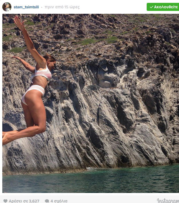 Ξέγνοιαστες στιγμές στην Πάρο περνάει η Σταματίνα Τσιμτσιλή λίγο πριν επιστρέψει στην πρωτεύουσα για την προετοιμασία της εκπομπής της. Από το πλευρό της φυσικά δεν λείπουν οι δύο κόρες της και το σκυλάκι της με τους οποίους χαίρεται όμορφους περιπάτους αλλά και εξορμήσεις στην εξοχή. Η παρουσιάστρια που μοιράζεται συχνά πυκνά στιγμιότυπα των διακοπών της με τους followers της στο instagram, αυτή τη φορά τις εντυπώσεις έκλεψε η εντυπωσιακή βουτιά από έναν βράχο με τα likes να ξεπερνούν τα 3.000!