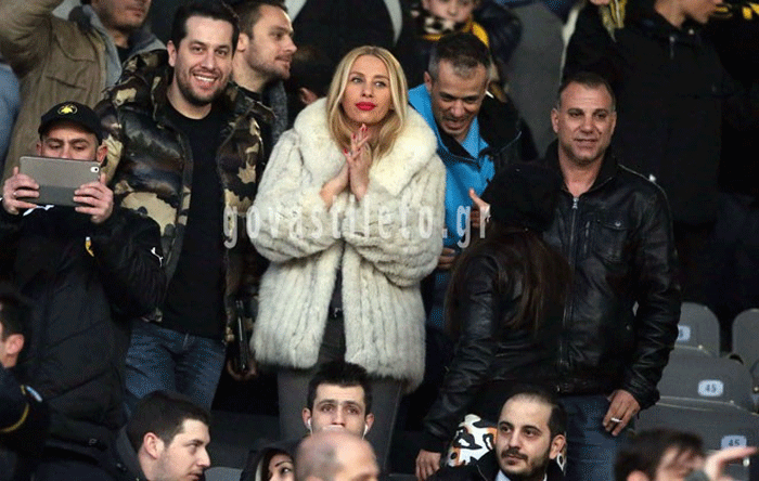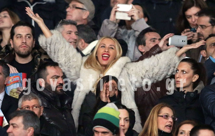 Το αδιαχώρητο κόσμου και επωνύμων στο Ο.Α.Κ.Α στην ποδοσφαιρική αναμέτρηση της ΑΕΚ με τον Ολυμπιακό. Φυσικά και η Γωγώ Μαστροκώστα δεν θα μπορούσε να λείπει από τόσο σημαντικό αγώνα του συζύγου της Τραϊανού Δέλλα (προπονητή της ΑΕΚ).