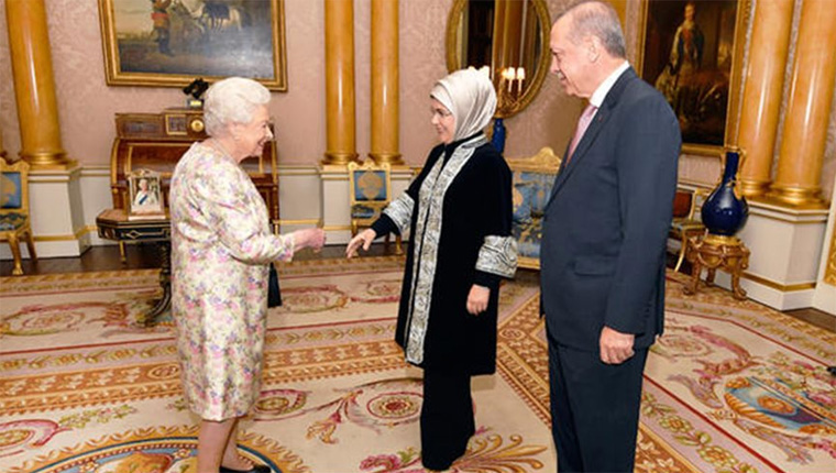 Ο πρόεδρος Ερντογάν πραγματοποίησε το όνειρό του. Προφανώς το σκεφτόταν από μικρός, όταν πουλούσε με τον νταβά του περασμένο στον σβέρκο σιμίτια στις κερκίδες της Φενέρμπαχτσε. Κατάφερε έπειτα από τόσα χρόνια να γίνει δεκτός για τσάι από τη βασίλισσα της Μεγάλης Βρετανίας ή, όπως υπογράφει επισήμως, τη Μεγαλειότητα της «Renn D’ Angletaire» σε άψογα νορμανδικά. Για να μη γελιόμαστε, η βασίλισσα της Αγγλίας ξέρει πως προέρχεται από τους νορμανδικούς οικισμούς της Βορείου Γαλλίας. Ο Ταγίπ Ερντογάν με δυσκολία υπεκλήθη στη βασίλισσα, όπως προβλέπει το πρωτόκολλο, κίνηση δύσκολη για έναν Σουλτάνο. Αλλά τα βλέμματα των δημοσιογράφων δεν έπεσαν μόνον επάνω στον νεο-οθωμανό Χαλίφη. Διέτρεξαν με περιέργεια τη μορφή της Εμινέ και έμειναν άναυδοι.