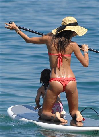 Έγινε γνωστό ότι η πανέμορφη Βραζιλιάνα και μοντέλο βρίσκεται μαζί με την οικογένειά της στη Χαβάη σε φάση διακοπών. Η Alessandra Ambrosio και η μικρή της κόρη, Anja απαθανατίστηκαν από τον φακό την ώρα που κάνουν paddle boarding και όπως φαίνεται απόλαυσαν δεόντως την δραστηριότητα! Το κόκκινο μπικίνι που φόρεσε ήταν πολύ αποκαλυπτικό αναδεικνύοντας τα καλλίγραμμα και πανύψηλα πόδια της.