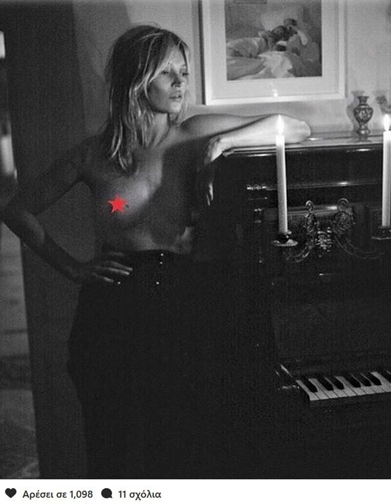Φορώντας ένα ψηλόμεσο μαύρο παντελόνι, η Kate ποζάρει topless δίπλα στο πιάνο του σπιτιού της στο Λονδίνο και κλέβει τις εντυπώσεις.