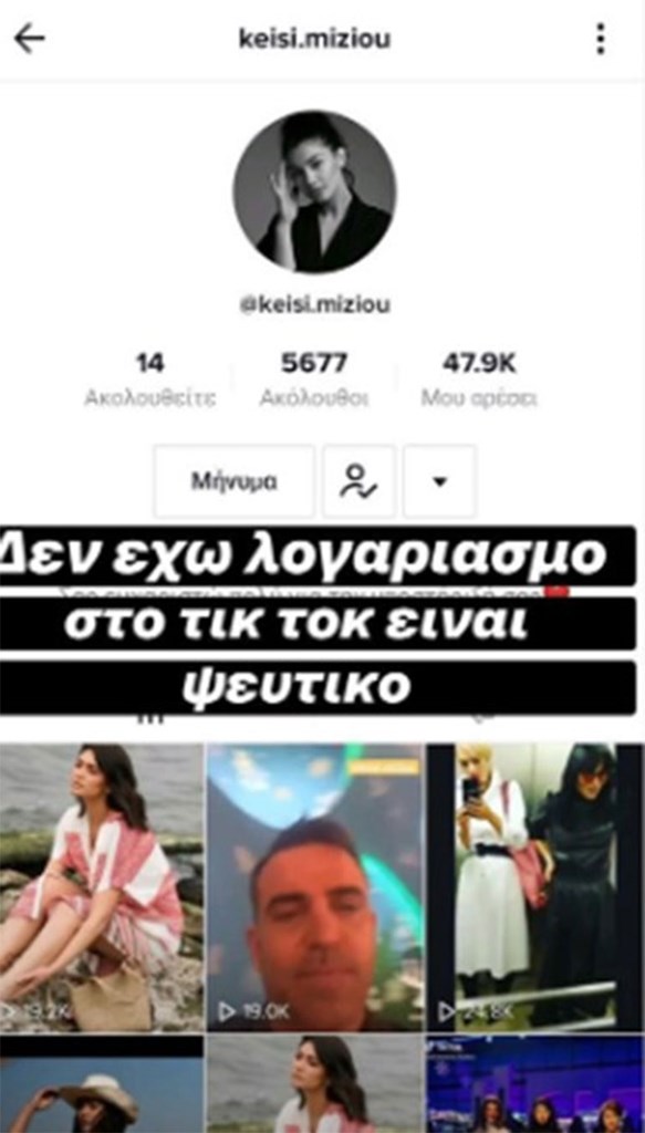 Η μελαχρινή καλλονή, θέλοντας να ενημερώνει τους θαυμαστές τη,ς έκανε ένα printscreen με το ψεύτικο προφίλ που της είχαν φτιάξει γράφοντας χαρακτηριστικά: «Δεν έχω λογαριασμό στο Tik Tok. Είναι ψεύτικο».