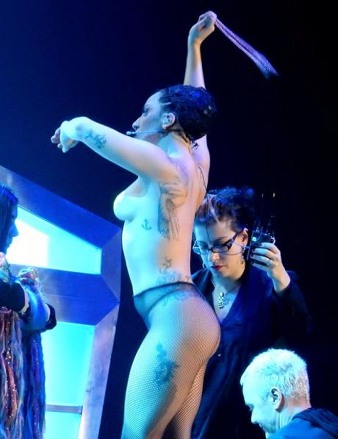 Αντί να οδηγηθεί στα παρασκήνια, προκειμένου να αλλάξει κοστούμι, η Lady Gaga ξεγυμνώθηκε ενώ τραγουδούσε. Έβγαλε μπροστά στο κοινό την μπλούζα της και έμεινε με ένα μικροσκοπικό μαύρο εσώρουχο και ένα διχτυωτό καλσόν με τους θαυμαστές της να ζητοκραυγάζουν και να απολαμβάνουν το θέαμα.