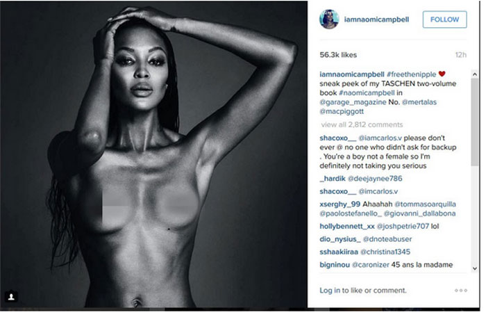 Για πολύ σοβαρό σκοπό ανέβηκε το βράδυ της Τρίτης στο προφίλ στο Instagram η topless φωτογραφία της Naomi Campbell.