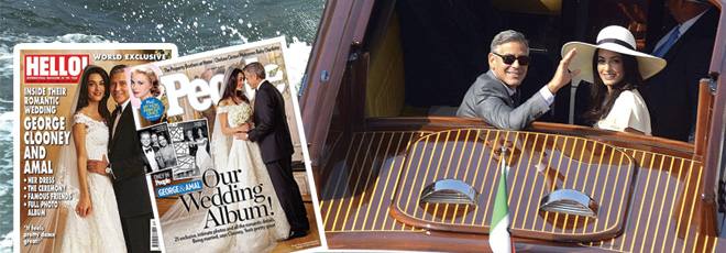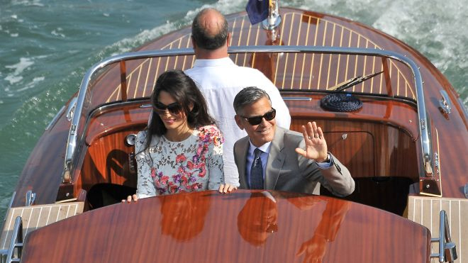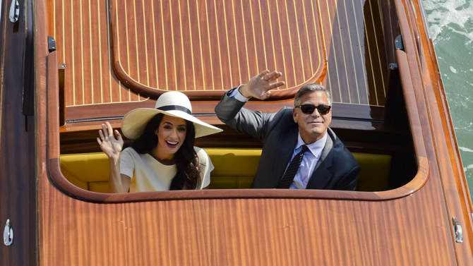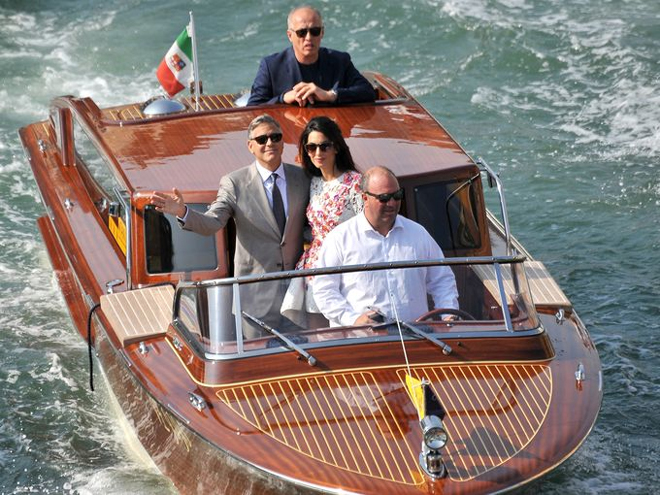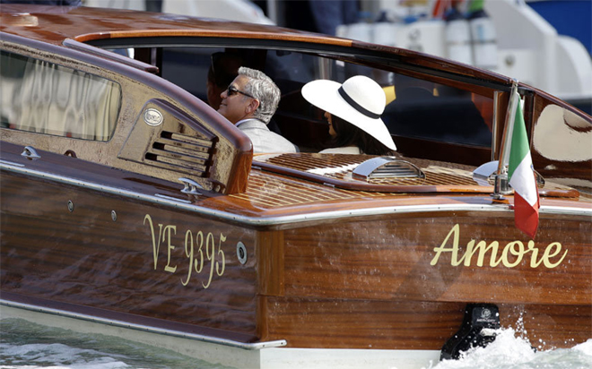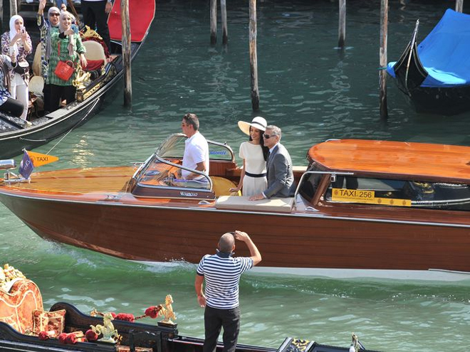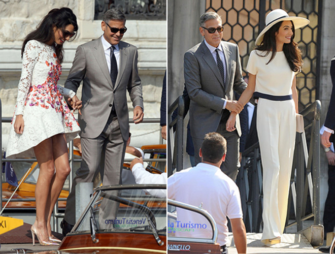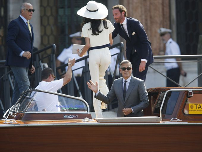 To γεγονός του γάμου του 53χρονου αστέρα του Χόλιγουντ με την 36χρονη διακεκριμένη νομικό, ήταν ούτως η άλλως η χαρά των φωτογράφων: Ένα παραμυθένιο σκηνικό, αυτό των καναλιών της Βενετίας και λαμπεροί καλεσμένοι, ανάμεσά τους ο Ματ Ντέιμον με τη γυναίκα του Λουτσιάνα Μπαρόσο, ο Τζον Κρασίνσκι και η Εμιλι Μπλαντ, ο Μπιλ Μάρεϊ, η Ελεν Μπάρκιν, ο Bono και η γυναίκα του Αλι Χιούσον, η Σίντι Κρόφορντ και ο σύζυγός της (και κουμπάρος στο γάμο) Ράντι Γκέρμπερ, ο γνωστός δευτεραγωνιστής και κολλητός του γαμπρού Ρίτσαρντ Κιντ, ο συνεταίρος παραγωγός του Κλούνεϊ Γκραντ Χέσλοβ και η διευθύντρια της Vogue Ανα Γουίντορ.