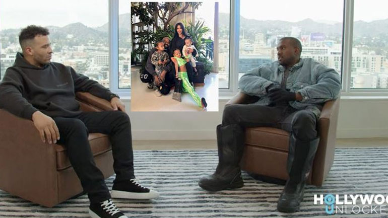 Κατά τη διάρκεια της συζήτησης, ο Kanye West αναφέρθηκε στην εν διαστάσει σύζυγό του, Kim Kardashian, με την οποία έχει τέσσερα παιδιά και είπε ότι πρόσφατα του απαγορεύτηκε η είσοδος στο σπίτι της, όπου έμενε μέχρι πριν τραβήξουν χωριστούς δρόμους.