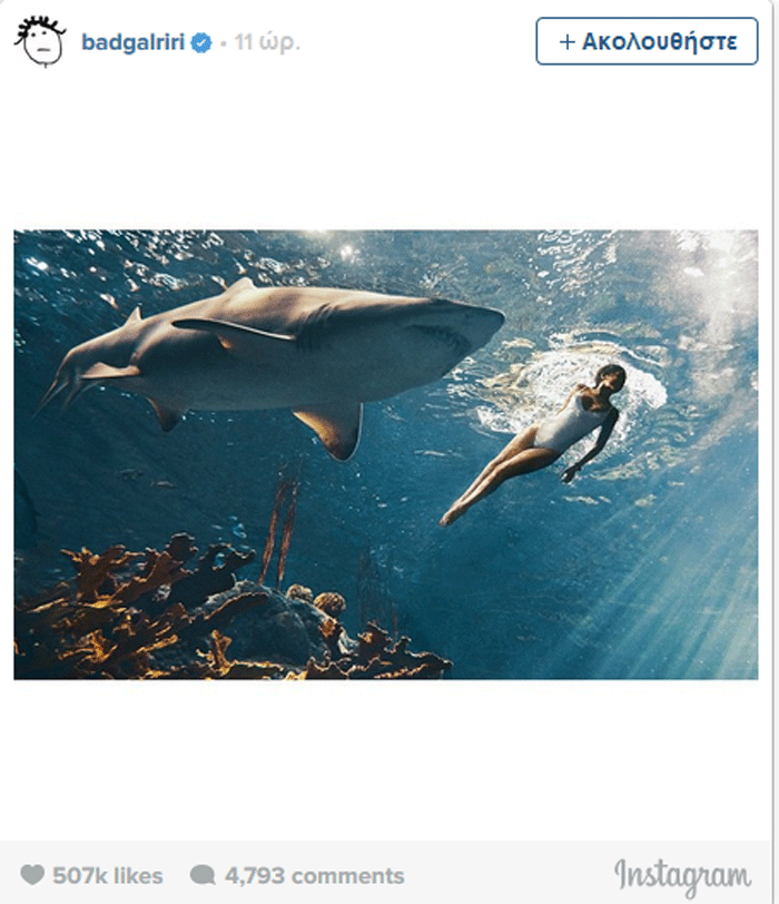 Η Riri ποζάρει στο φακό του Norman Jean Roy, φορώντας εντυπωσιακά μαγιό που αναδεικνύουν για μία ακόμη φορά το καλλίγραμμο κορμί της και τολμά να κολυμπήσει με έναν καρχαρία! Η ίδια μοιράστηκε τις πρώτες φωτογραφίες από τα γυρίσματα της εντυπωσιακής φωτογράφισης, μέσα από το λογαριασμό της στο instagram. Πάρτε μια γεύση…
