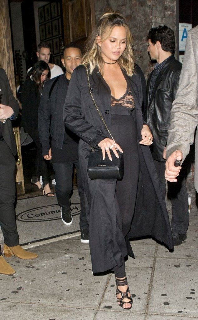 Η 30χρονη καλλονή απαθανατίστηκε την ώρα που έβγαινε από το μαγαζί «Νο Νame», με τους παπαράτσι να εστιάζουν στο… nip slip της. Τι συνέβη; Η Chrissy επέλεξε παρά την προχωρημένη της εγκυμοσύνη ένα πολύ σέξι outfit, φορώντας ένα μαύρο ολόσωμο κορμάκι με δαντελένιο διάφανο μπούστο, χωρίς σουτιέν από μέσα.
