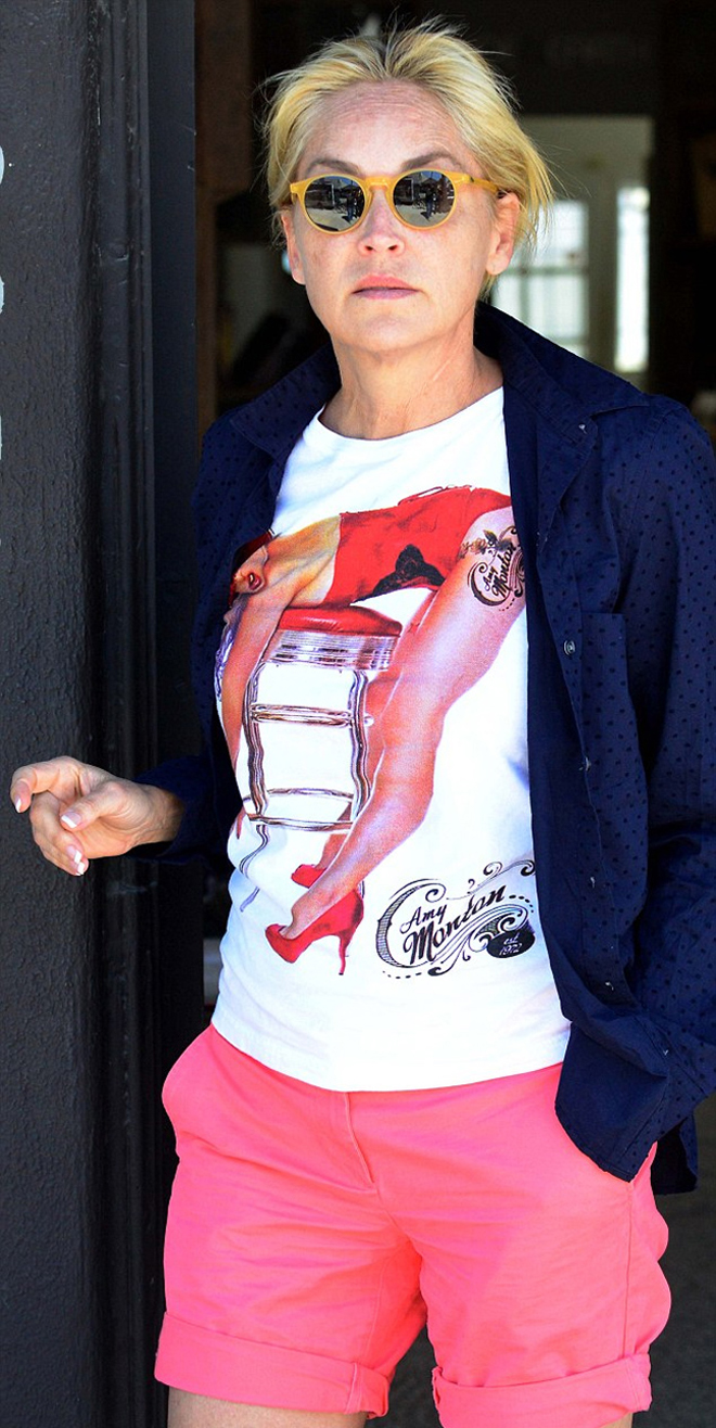 Φορώντας ένα ροζ σορτσάκι, αθλητικά παπούτσια και χωρίς ίχνος μακιγιάζ εθεάθη η αμερικανίδα ηθοποιός Sharon Stone να κάνει βόλτα στη Καλιφόρνια παρέα με μια φίλη της.