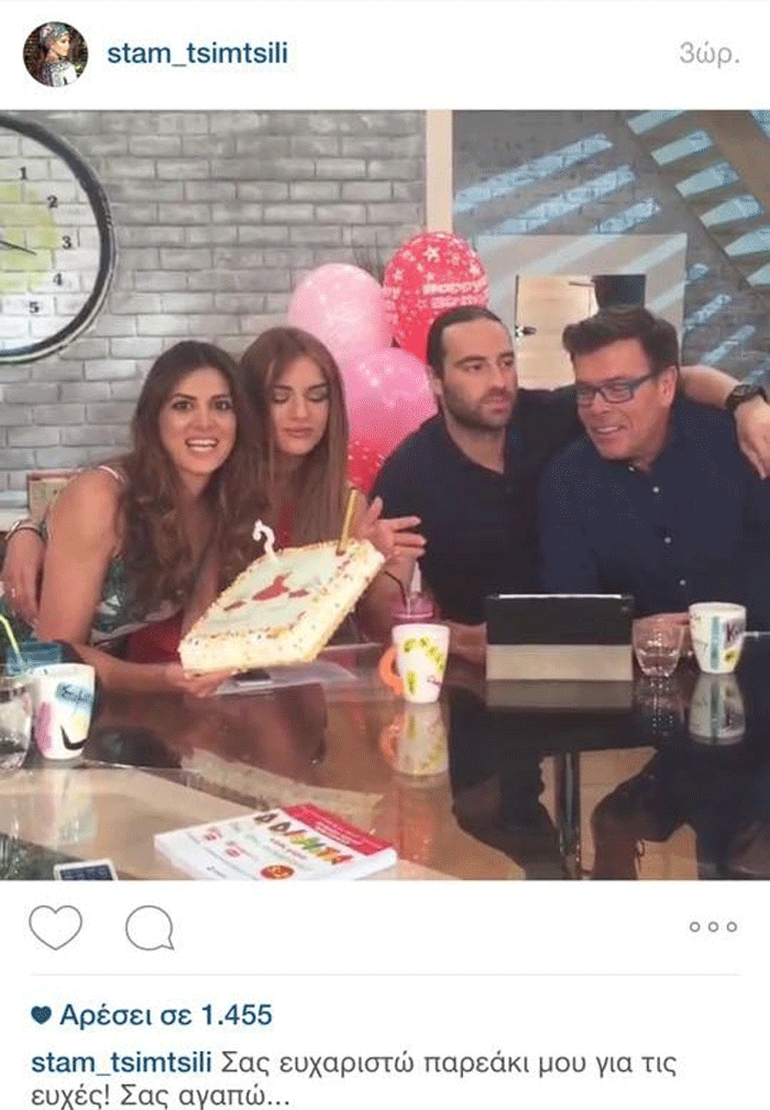 Συγκεκριμένα οι συνεργάτες της στην έναρξη της εκπομπής της ευχήθηκαν χρόνια πολλά για τα γενέθλια της με μία τούρτα που έγραφε «Happy Birthday Stammy».