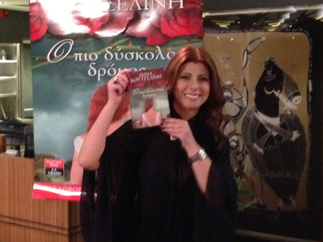 (Η συγγραφέας Ζήνα Κουτσελίνη υπογράφει το πρώτο της βιβλίο)