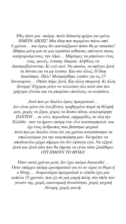 Όταν οκτώ χρόνια μετά, δεν έχω ακόμη δικαιωθεί… Όταν υπάρχει ακόμη ερωτηματικό για το αν είμαι το θύμα ή ο θύτης… Αναρωτιέμαι πραγματικά τι ελπίδα έχει μια κοπέλα 18 χρονών, που ζει σε μια μικρή πόλη, στο σπίτι των γονιών της, χωρίς οικονομική δυνατότητα, χωρίς ψυχική δύναμη, χωρίς φωνή;