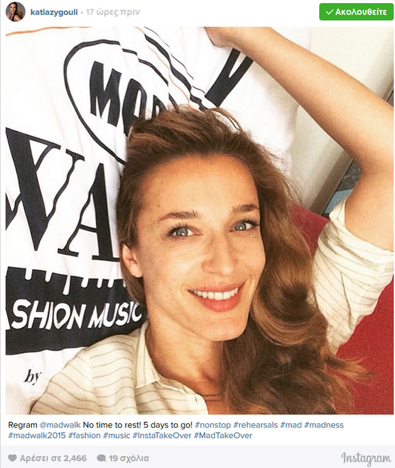 Η Κάτια το απόγευμα της Παρασκευής μοιράστηκε με τους followers της στο Instagram την πρώτη φωτογραφία από την προετοιμασία, με την ίδια να δηλώνει πως δεν έχει χρόνο για ξεκούραση! «No time to rest! 5 days to go!» έγραψε χαρακτηριστικά στη λεζάντα.
