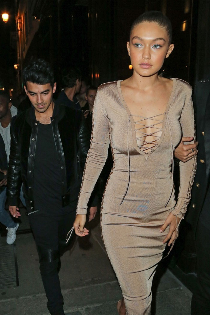 Η Gigi το βράδυ της Πέμπτης έκανε τα φλας να αστράψουν και τα βλέμματα των περαστικών να «πέσουν» πάνω της. Όπως θα δείτε και στις φωτογραφίες παρακάτω η νεαρή καλλονή φόρεσε ένα μίντι φόρεμα σε nude απόχρωση, χωρίς σουτιέν που άφηνε να διαγράφεται το στήθος της. Στο παρά πέντε γλύτωσε τα σέξι αποκαλυπτήρια, αλλά είχε στο πλευρό της και τον σύντροφό της Joe Jonas που δεν την άφησε λεπτό από τα μάτια του.