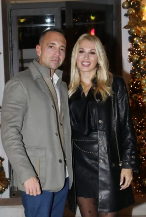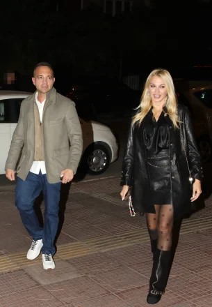 Δίπλα της, ο Βασίλης Σταθοκωστόπουλος κινήθηκε σε πιο κλασικές γραμμές, με μπεζ τζάκετ, λευκό πουκάμισο και μπλε παντελόνι. Πόζαραν χαμογελαστοί και χαλαροί στο φακό και έδειχναν να απολαμβάνουν τη βραδινή τους έξοδο.