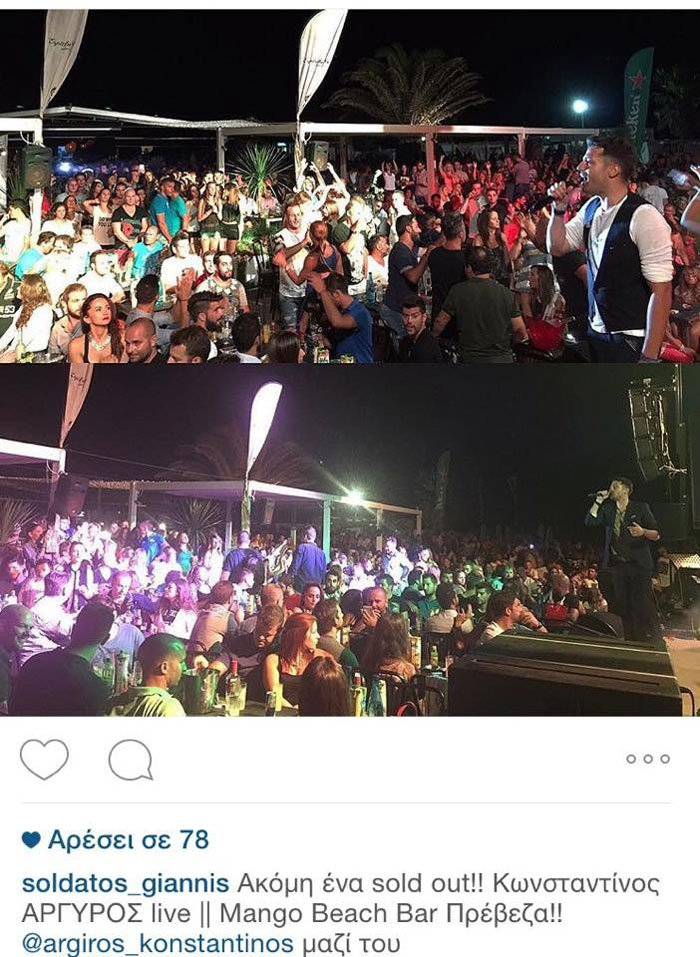 Χθες το βράδυ ο Κωνσταντίνος εμφανίστηκε στο Mango beach bar στην Πρέβεζα κι όπως μπορείτε να δείτε το μαγαζί γέμισε ασφυκτικά από κόσμο που διασκέδασε μέχρι τις πρώτες πρωινές ώρες.