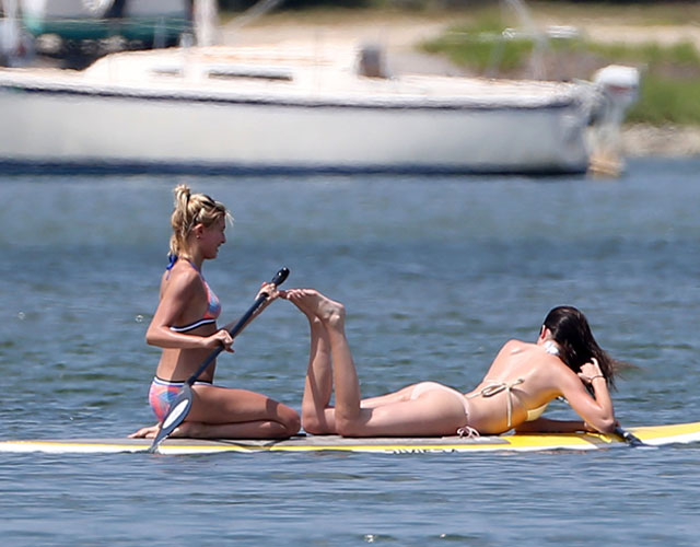 Υπό το άγρυπνο βλέμμα των προσωπικών τους φρουρών οι δύο καλές φίλες απόλαυσαν μια μέρα στην θάλασσα, κάνοντας σπορ και ηλιοθεραπεία.