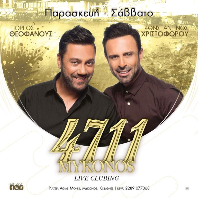Έπειτα από μια σειρά επιτυχημένων εμφανίσεων στην Κύπρο ο Γιώργος Θεοφάνους και ο Κωνσταντίνος Χριστοφόρου από 1η Ιουνίου ξεκίνησαν εμφανίσεις στη Μύκονο.