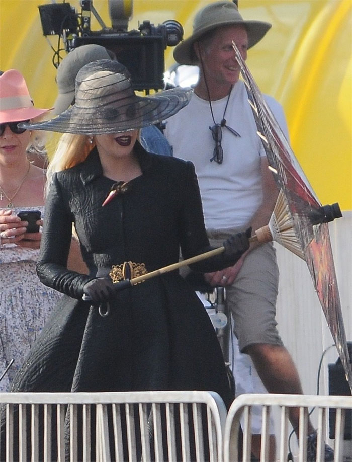 Ντυμένη στα μαύρα και με ασορτί ομπρέλα, η Lady Gaga βγήκε βόλτα στην στην παραλία της Santa Monica μαζί με ένα παιδάκι και φυσικά οι παπαράτσι ήταν εκεί. Βεβαίως πρόκεται για σκηνή από την 4η σεζόν του American Horror Story όπου θα δούμε την 29χρονη superstar στον ρόλο μιας σατανικής ξενοδόχου.