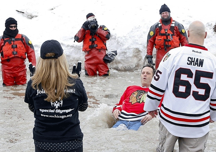 Κάθε χρόνο «γενναίοι» κολυμβητές μαζεύονται σε αυτή τη λίμνη και βουτάνε για να συγκεντρώσουν χρήματα για τους αθλητές με κινητικά προβλήματα. Αυτό τόλμησε να κάνει η εκκεντρική σταρ με τον αρραβωνιαστικό της αλλά και ο ηθοποιός Vince Vaughn.