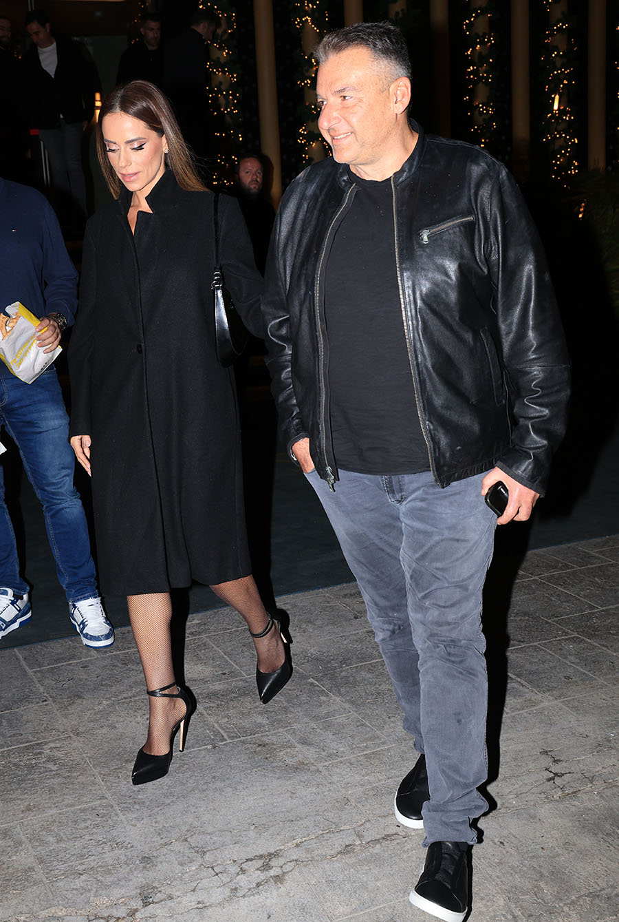 Η Μαρία Αντωνά για ακόμα μια βραδιά έδειχνε άκρως εντυπωσιακή και σέξι, φορώντας μέσα από το μαύρο παλτό της, ένα μίνι κόκκινο φόρεμα το οποίο συνδύασε με διχτυωτό καλσόν και μαύρες γόβες.