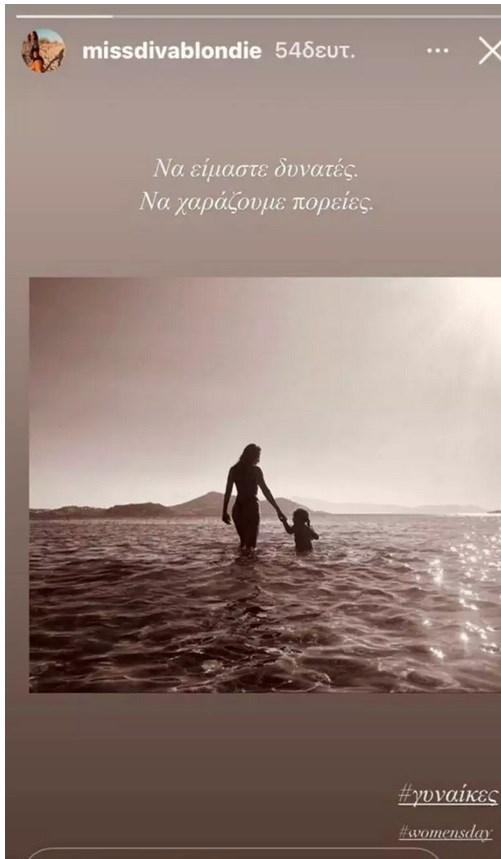 Η πρώην σύζυγος του Κώστα Δόξα, μετά τις εξελίξεις στην αντιπαράθεση με τον τραγουδιστή, θέλησε να κάνει μια τοποθέτηση όλο νόημα, με αφορμή τη σημερινή ημέρα. Αναρτώντας μια φωτογραφία με την κόρη της, Σοφία, στη θάλασσα, έγραψε: «Να είμαστε δυνατές, να χαράζουμε πορείες».