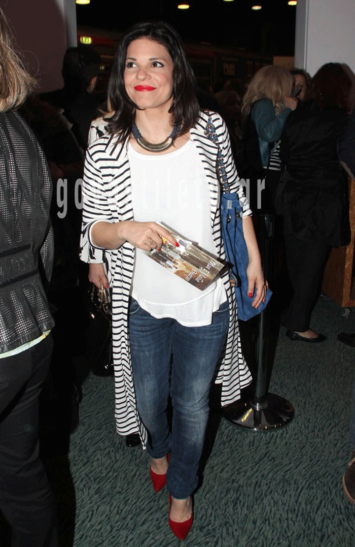 Πιο όμορφη από ποτέ, και ο έρωτας είναι η αιτία, η Μαρίνα Ασλάνογλου χαμογελάει στον φακό του govastileto.gr κατά την είσοδό της στο θέατρο Badmiton.