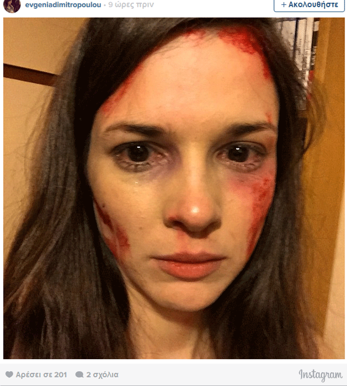 Αυτή η φωτογραφία κυκλοφορεί στα social media εδώ και λίγες ώρες και σοκάρει, αφού η ηθοποιός Ευγενία Δημητροπούλου είναι γεμάτη αίματα και μώλωπες στο πρόσωπο, βουρκωμένη και με πρησμένα μάτια.