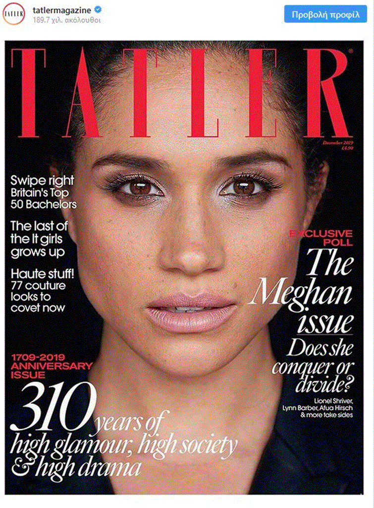 Μετά την πρόσφατη συνέντευξη της όπου αποκάλυψε τα συναισθήματα της για την ζωή της ως royal και την αντιμετώπιση που δέχεται από τα ΜΜΕ το Tatler, διεξήγαγε μια αποκλειστική δημοσκόπηση σε εθνικό επίπεδο για τις απόψεις της χώρας για τη Meghan και τέσσερις συγγραφείς – Lynn Barber, Afua Hirsch, Yasmin Alibhai-Brown και Lionel Shriver- μοιράζονται τις διαφορετικές τους απόψεις για τη Δούκισσα.
