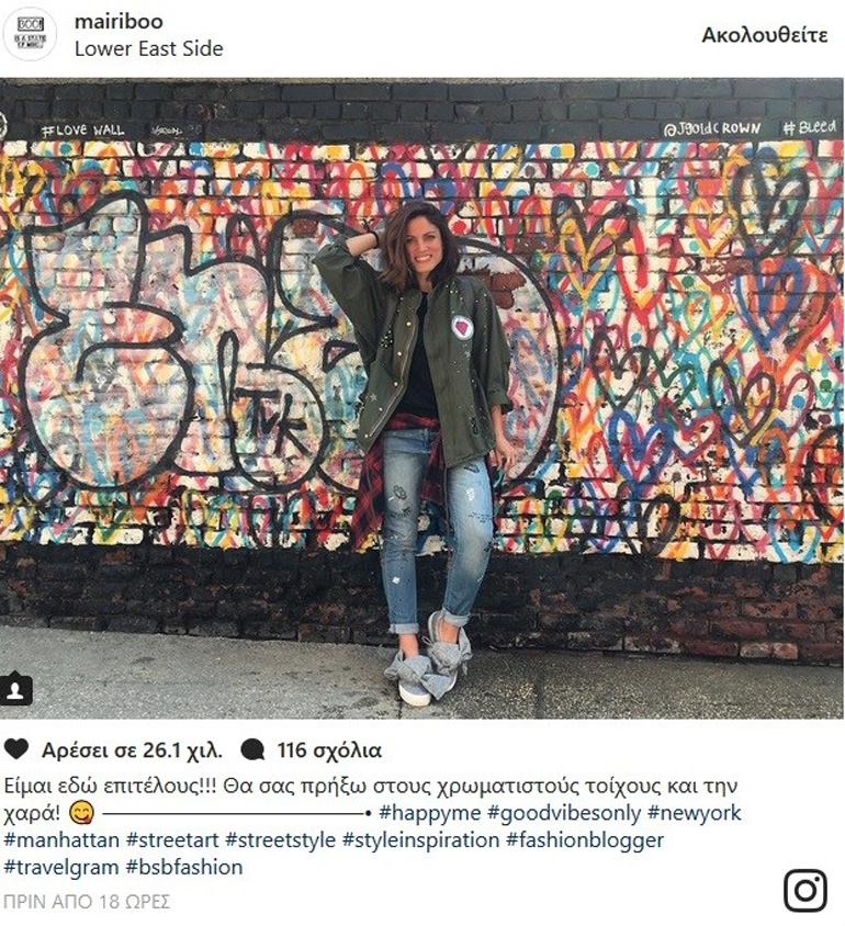 Η γνωστή παρουσιάστρια εδώ και δύο ημέρες βρίσκεται στη Νέα Υόρκη και μοιράστηκε με τους followers της στο Ιnstagram μερικά στιγμιότυπα από το ταξίδι της στο Μεγάλο Μήλο.
