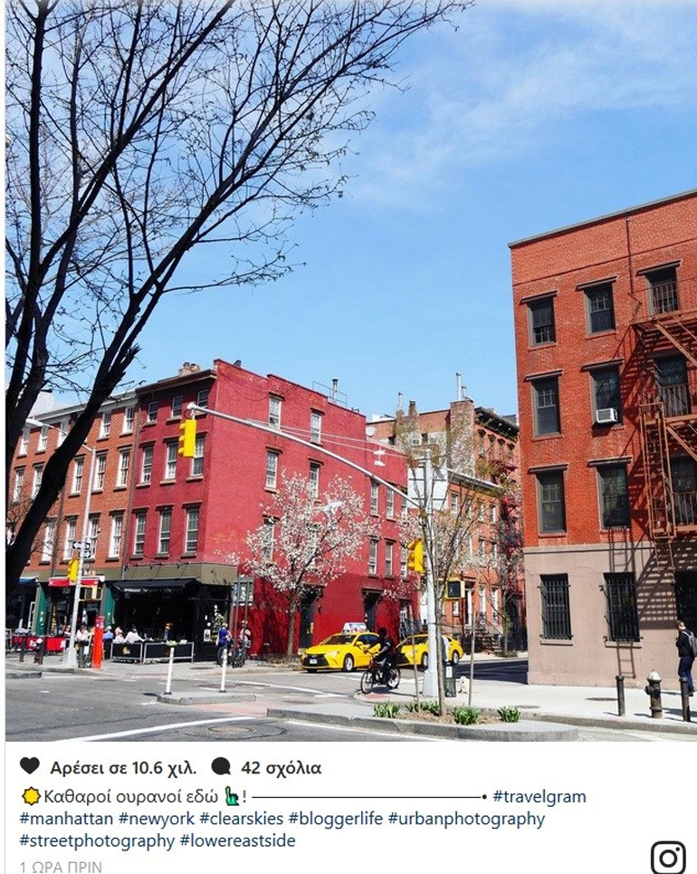 H πρώτη φωτογραφία ήταν μπροστά σε ένα γκράφιτι από τα εκατοντάδες που συναντά κάποιος στη Νέα Υόρκη, ενώ στη συνέχεια μας έδειξε μία γειτονιά της πόλης.