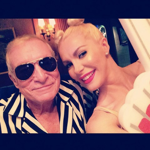 Ο Hugh Hefner και η Crystal Harris μπήκαν στο πνεύμα του Halloween. Το ζευγάρι εμφάνισε τα αστεία του κοστούμια στο Instagram, με το μοντέλο να έχει ντυθεί σαν τη Miley Cyrus και τον Hefner να μπαίνει σε ρόλο Robin Thicke.