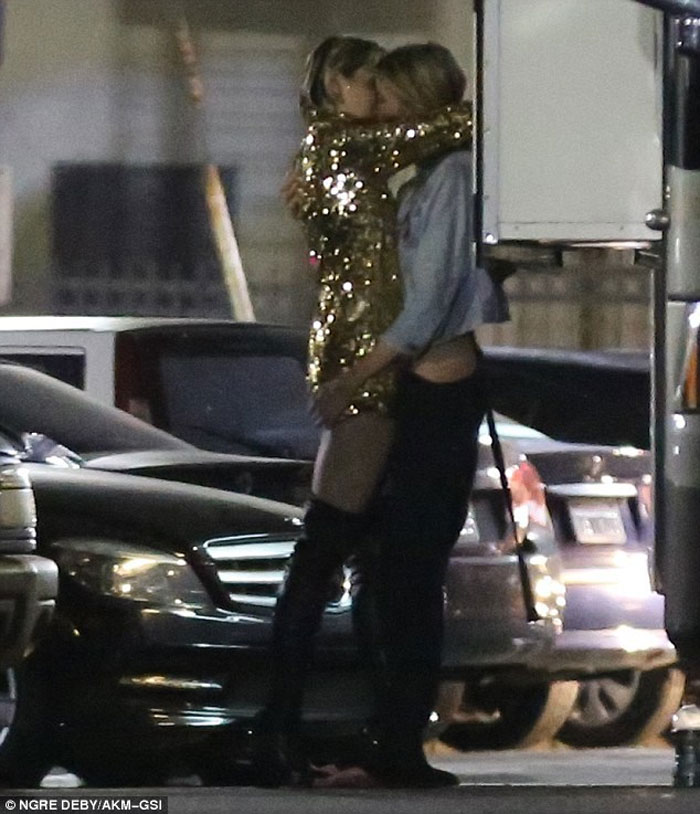 Οι παπαράτσι απαθανάτισαν την 22χρονη τραγουδίστρια στο Palm Beverly Hills σε τρυφερές στιγμές με το 25χρονο μοντέλο πίσω από ένα αυτοκίνητο, κατά τη διάρκεια διαλείμματος από το βίντεο κλιπ