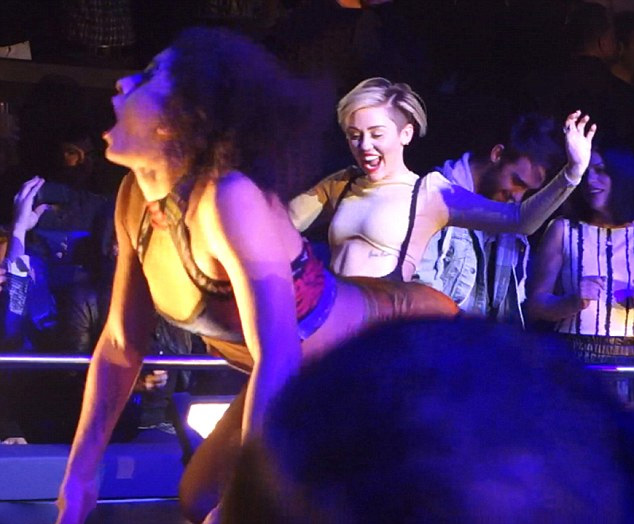 Κορυφαία στιγμή της βραδιάς, το βίντεο που ακολουθεί με τη Miley να φιλάει μια ημίγυμνη χορεύτρια με πάθος!
