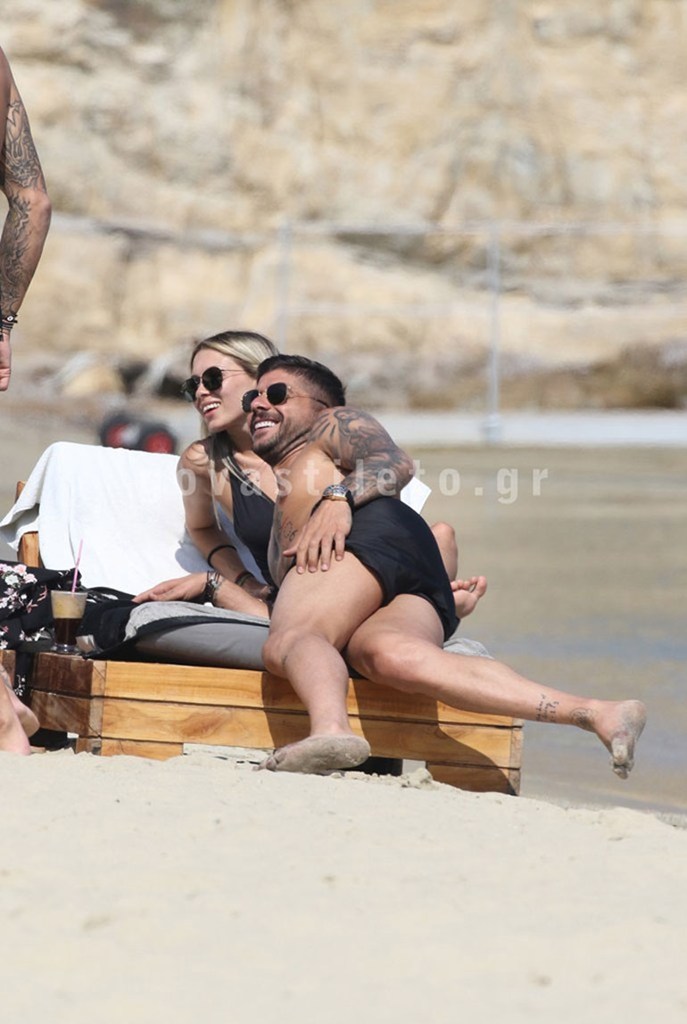 Το ζευγάρι απαθανάτισε ο φωτογραφικός φακός του govastileto.gr σε πολυσύχναστη παραλία της Μυκόνου να απολαμβάνει τις διακοπές του παρέα με φίλους.