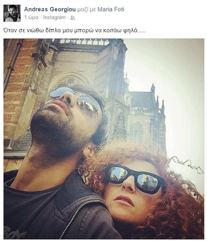 Μια ανάρτηση στο instagram του Αντρέα Γεωργίου άφησε πολλά υπονοούμενα για την προσωπική του ζωή. Μια τρυφερή εξομολόγηση «Όταν σε νιώθω δίπλα μου μπορώ να κοιτάω ψηλά» συνόδευσε την φωτογραφία με την Μαρία Φώτη.