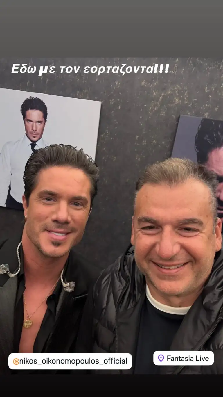 Λίγο μετά την πολυσυζητημένη συνέντευξη του τραγουδιστή στον παρουσιαστή, ο Γιώργος Λιάγκας διασκέδασε στον Νίκο Οικονομόπουλο και φυσικά βρέθηκε και στο καμαρίνι με τη σύντροφό του, Μαρία Αντωνά για να του ευχηθούν και από κοντά για την ονομαστική γιορτή του.