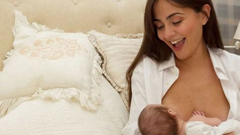Το βράδυ της Δευτέρας η ευτυχισμένη μανούλα ανήρτησε στον λογαριασμό της στο Instagram δύο στιγμιότυπα από την ώρα που θήλαζε το νεογέννητο γιο της.