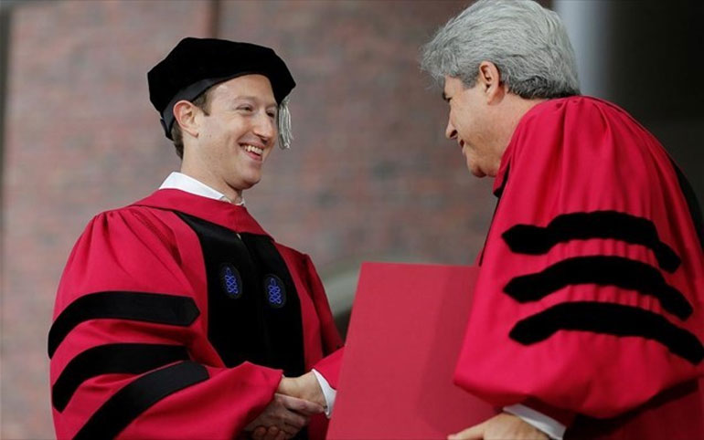 Ο 33χρονος δισεκατομμυριούχος επέστρεψε στο πανεπιστήμιο όπου ξεκίνησε αυτό που έμελλε να γίνει το δικό του μέσο κοινωνικής δικτύωσης, για να λάβει το πτυχίο του τιμής ένεκεν.