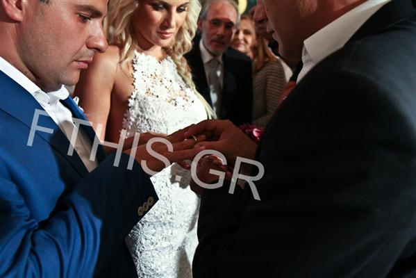 Μετά την τελετή, όλοι κατευθύνθηκαν στο γλέντι. Οι νεόνυμφοι έκαναν την είσοδό τους και αμέσως χόρεψαν τον πρώτο τους χορό υπό τη μελωδία του τραγουδιού του Νίκου Βέρτη «Αν είσαι ένα αστέρι» και έκοψαν την τετραώροφη λευκή τούρτα τους. Και το γλέντι ξεκίνησε…