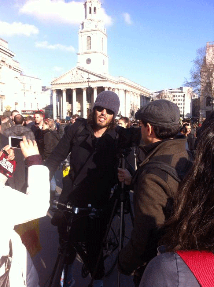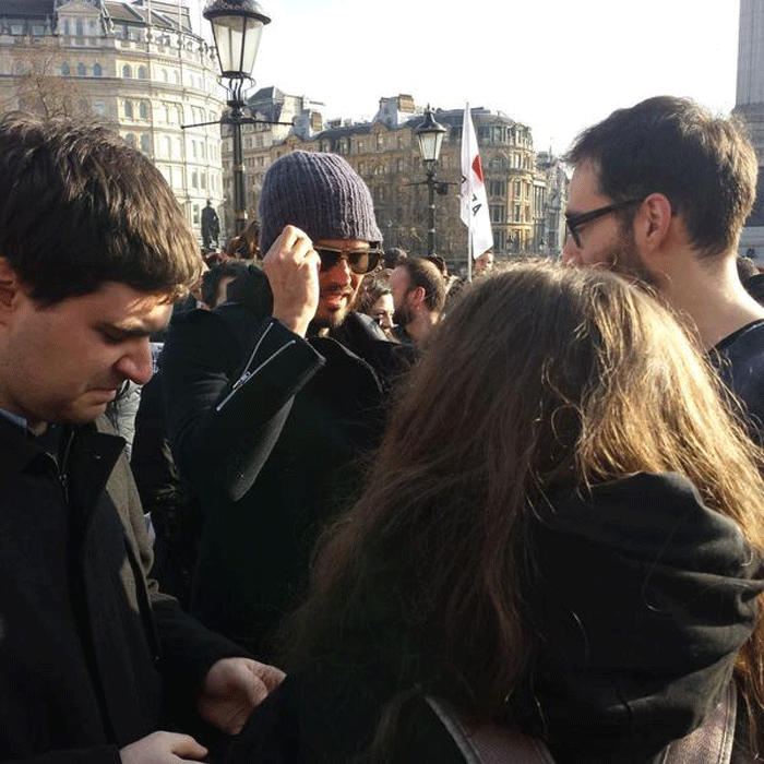 Ο πρώην της Κέιτι Πέρι, άφησε λοιπόν μηνύματα μέσω του twitter και την Κυριακή διαδήλωσε υπέρ της Ελλάδας μαζί με πολίτες, οι οποίοι δεν έχασαν την ευκαιρία και τον τράβηξαν φωτογραφίες, στην Πλατεία Τραφάλγκαρ του Λονδίνου.