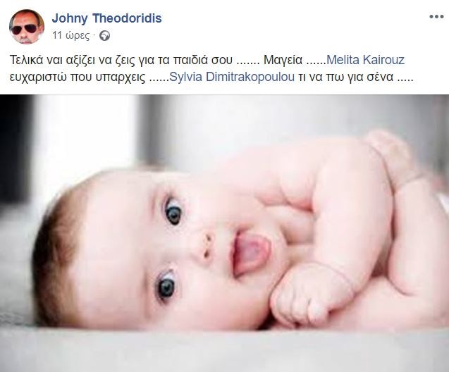 Σε πελάγη ευτυχίας πλέει ο Τζώνυ Θεοδωρίδης καθώς η σύζυγός του Σύλβια Δημητρακοπούλου πριν από λίγες ώρες έφερε στον κόσμο το πρώτο τους παιδί, ένα υγιέστατο κοριτσάκι.