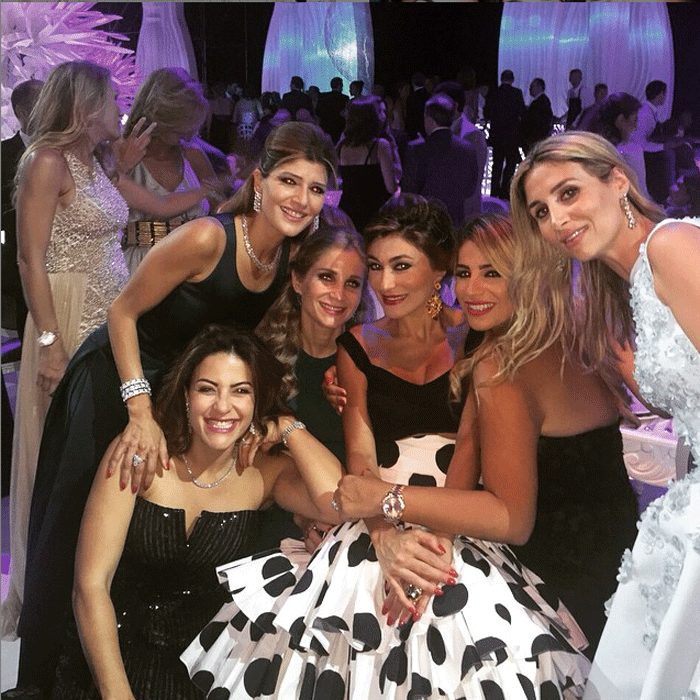 Ανάμεσα στους εκλεκτούς καλεσμένους ήταν οι οικογένειες Λαιμού, Βαφειά, Λάτση, Λαλαούνη, Γουρδομιχάλη, Κορωνιού, Βαρδινογιάννη, Λεβεντάκη, Φράγκου, Τσάκου, Ορφανίδη και Μαρτίνου, αλλά και πολιτικοί όπως ο Αντώνης Σαμαράς, η Έυα Καϊλή και πολλοί Λιβανέζοι επιχειρηματίες και πολλοί φίλοι του ζευγαριού, απόλαυσαν μια ελληνική βραδιά.