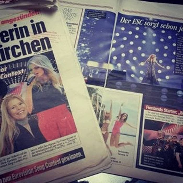 Ο Τύπος της Αυστρίας υποδέχτηκε την Μαρία Έλενα Κυριάκου, με τον καλύτερο τρόπο μιας που όπως μας ενημερώνει το INFE GREECE εφημερίδες και περιοδικά κυκλοφόρησαν αφιερώνοντας της δημοσιεύματα με τα οποία την εκθειάζουν για την υπέροχη φωνή της, για τις πρόβες όλης της ομάδας που ανέτρεψαν τα έως τώρα προγνωστικά που ενώ είχαν την Ελλάδα ως μη υπολογίσιμη δύναμη στη φετινή Eurovision ξαφνικά το κλίμα άλλαξε.