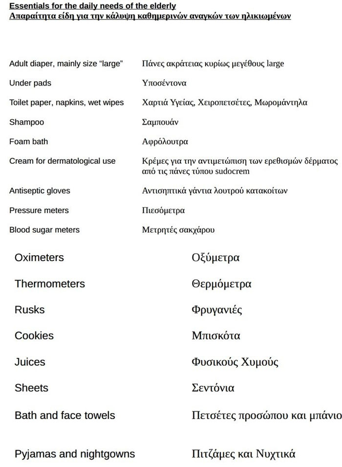 Επιπλέον, για να στηρίξουν το Γηροκομείο Αθηνών, η Πρεσβεία της Νοτίου Αφρικής και η Aspen Greece θα συνεισφέρουν προιόντα από την επισυναπτόμενη λίστα.